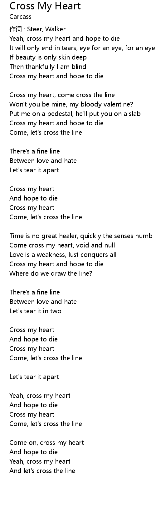 | Cross my heart, come cross the line | |
