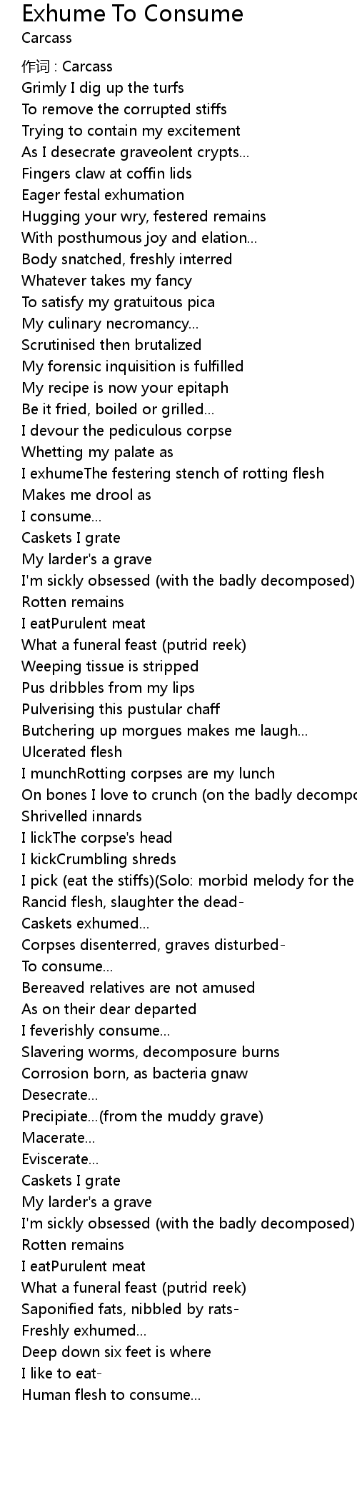 | I pick (eat the stiffs)(Solo: morbid melody for the deceased with salt to taste) | |