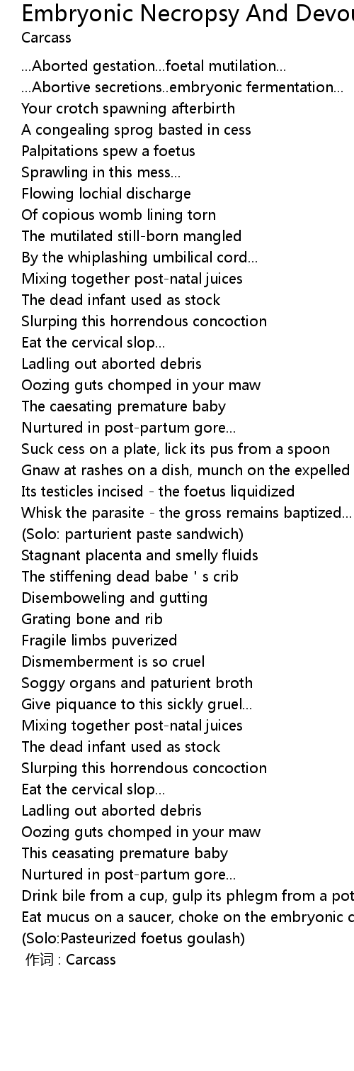 | 歌曲 | Embryonic Necropsy And Devourment |