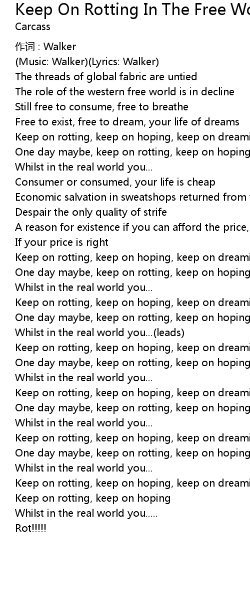 | Keep on rotting, keep on hoping, keep on dreaming | |