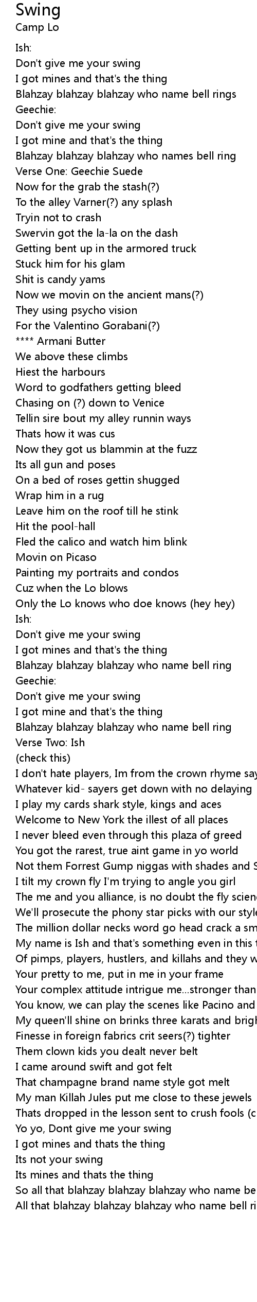 Yo yo, Dont give me your swing |