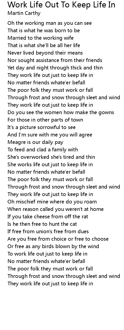 To work life out just to keep life in |