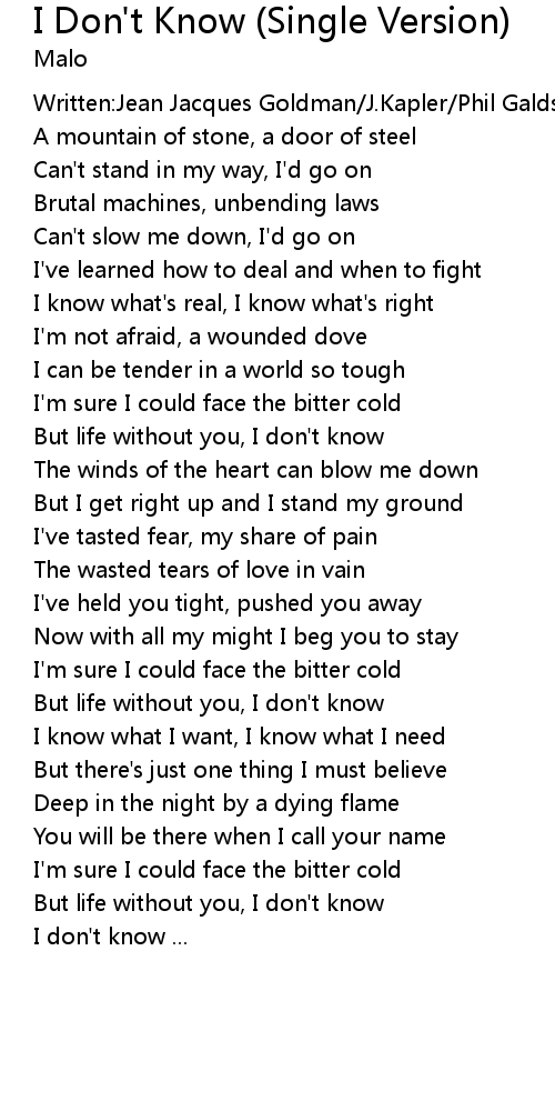 But life without you, I don't know |