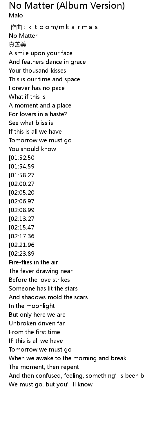 | [00:04.00] | No Matter |