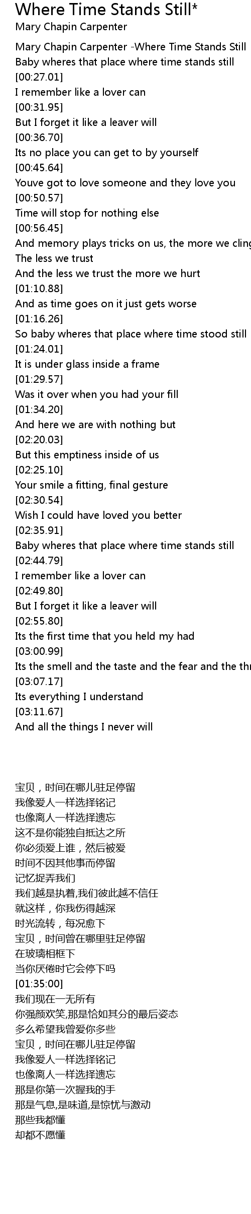 Mary Chapin Carpenter -Where Time Stands Still |