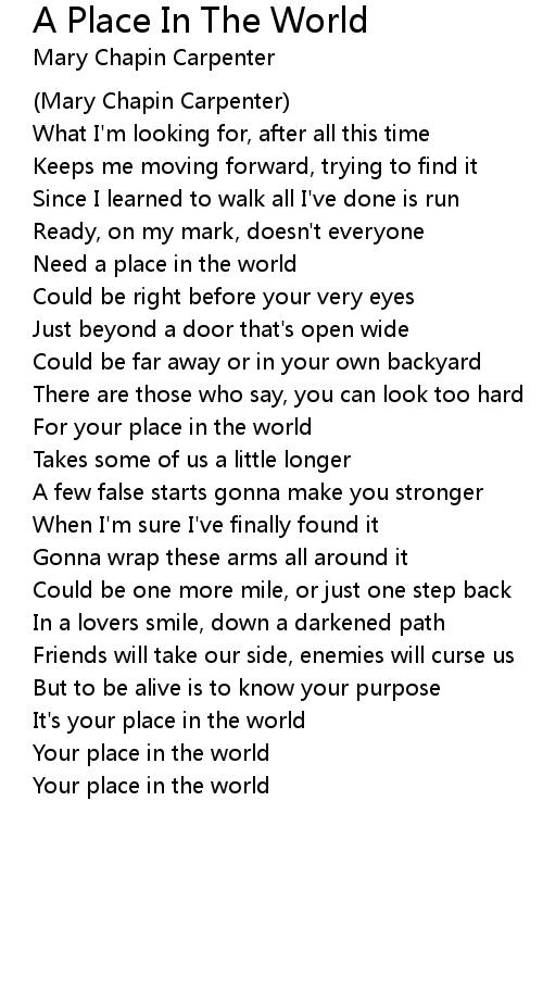 It's your place in the world |