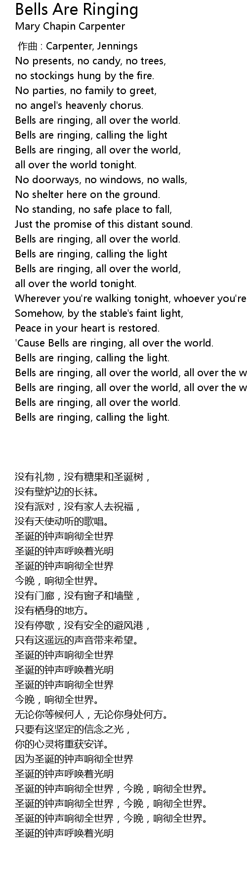 | 歌曲 | Bells Are Ringing |