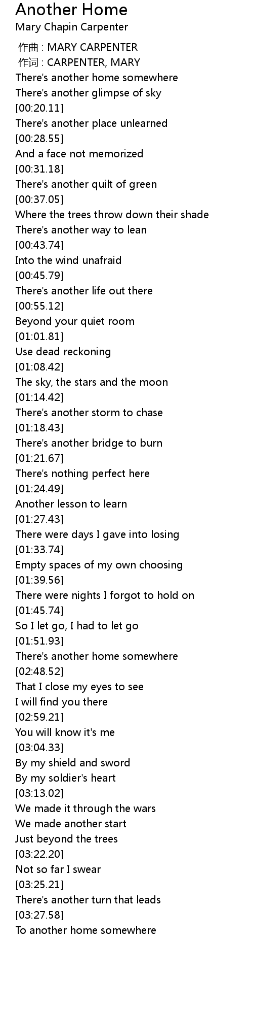 | [00:00.00] | zuo qu : MARY CARPENTER |