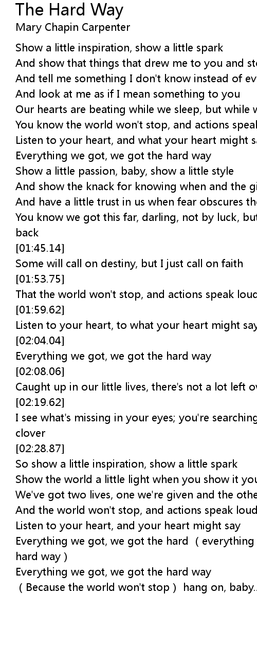 | [03:19.28] | Everything we got, we got the hard (everything we got, we got the hard way) |