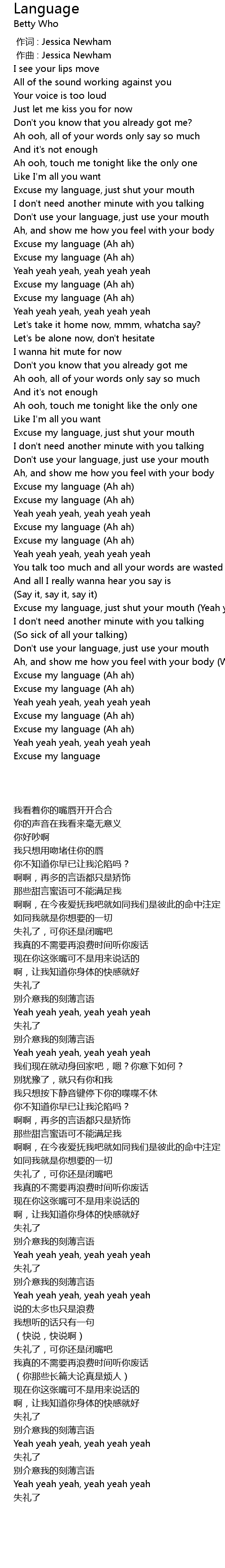 | [02:32.49] | Excuse my language, just shut your mouth (Yeah yeah yeah) |