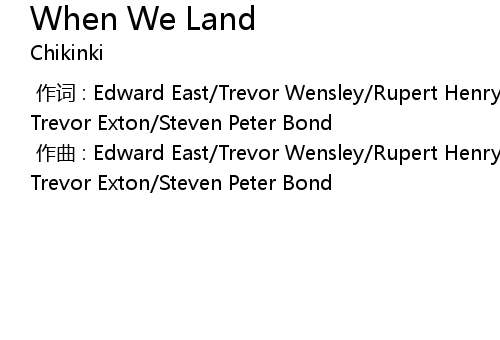 [00:00.000] 作词 : Edward East/Trevor Wensley/Rupert Henry James Browne/Simon Trevor Exton/Steven Peter Bond