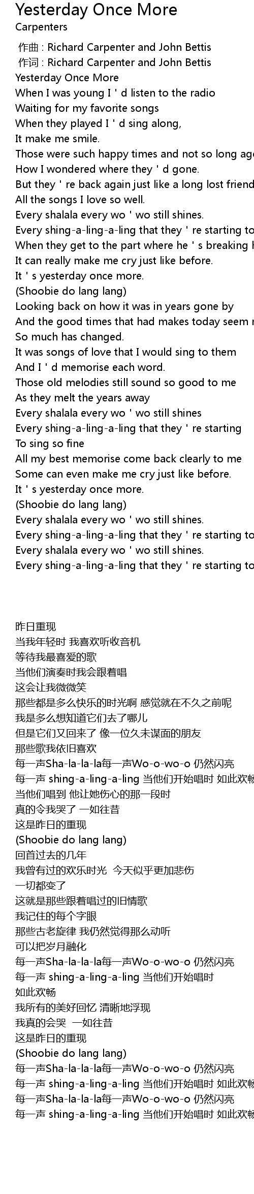 | [00:01.000] | Yesterday Once More |