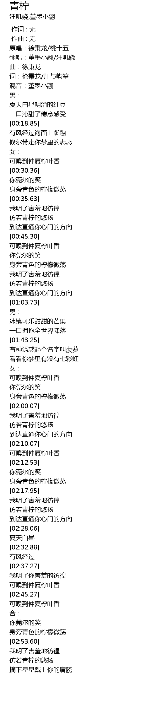 | [02:46.18] | 可嗅到仲夏柠叶香 |