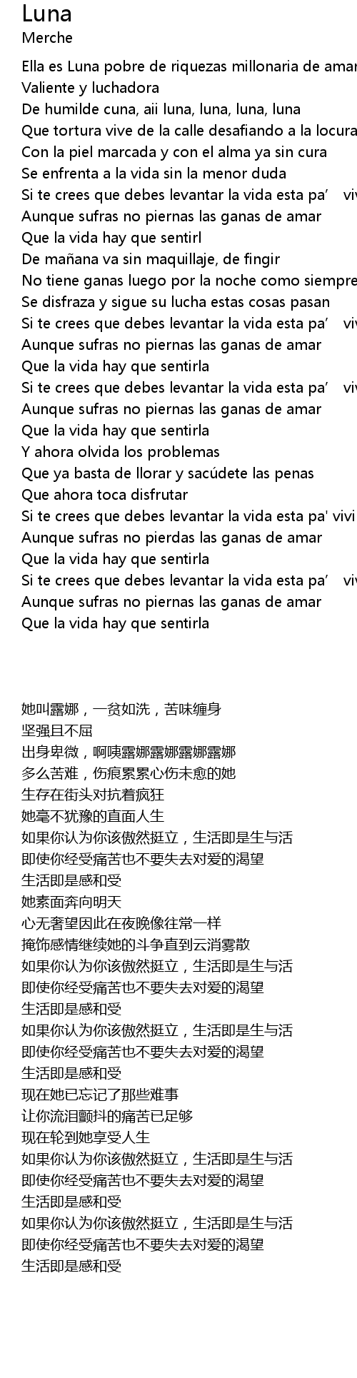| [00:10.67] | Ella es Luna pobre de riquezas millonaria de amarguras |