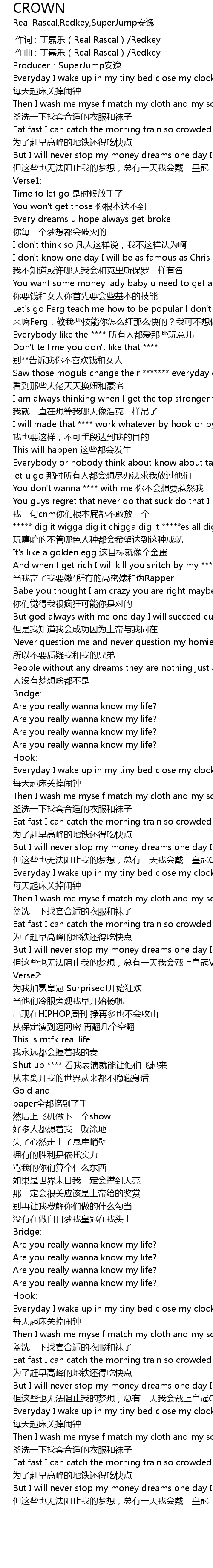 | [01:56.286] | But I will never stop my money dreams one day I will get the crown 但这些也无法阻止我的梦想,总有一天我会戴上皇冠Verse2: |