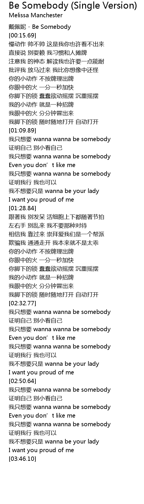 | [03:27.79] | wo zhi xiang yao wanna wanna be somebody |