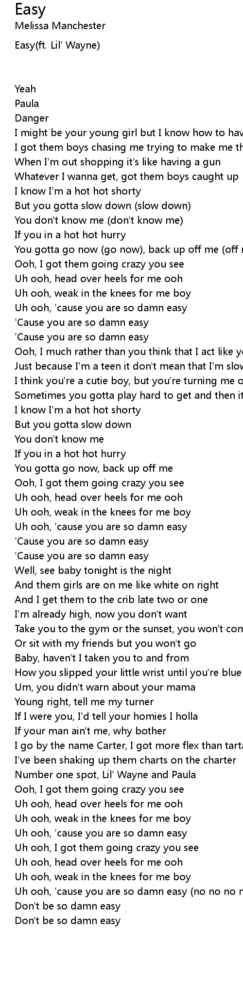 Uh ooh, 'cause you are so damn easy