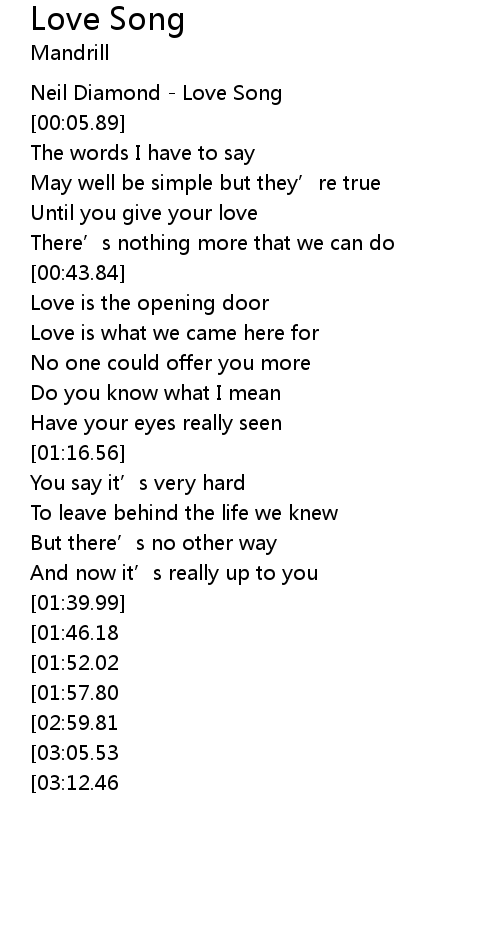 | [00:01.12] | Neil Diamond Love Song |