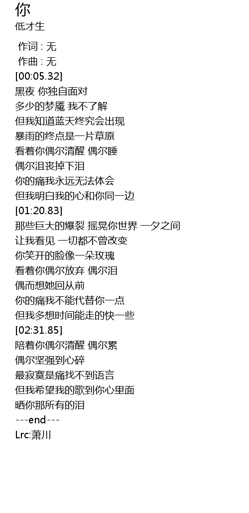 | [00:00.000] | 作词 : 无 |