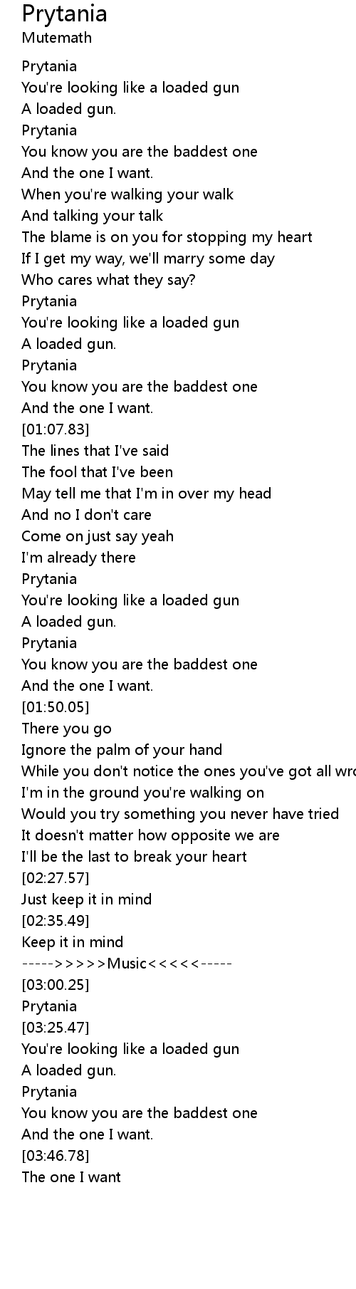 | [00:53.61] | You're looking like a loaded gun |