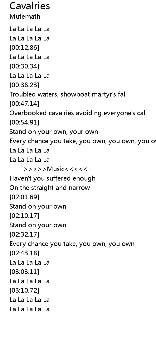 | [00:49.61] | Overbooked cavalries avoiding everyone's call |