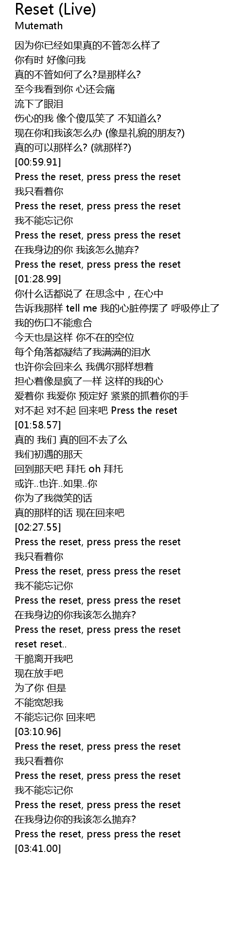 | [01:54.73] | 对不起 对不起 回来吧 Press the reset |