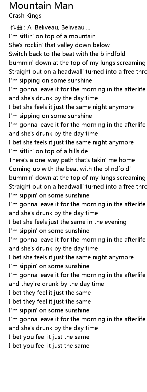 | [00:19.63] | I'm sittin' on top of a mountain. |