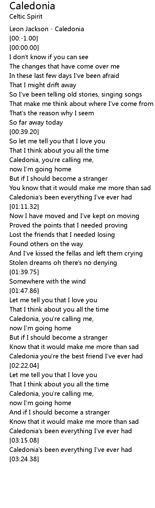 [02:16.21] Caledonia you're the best friend I've ever had