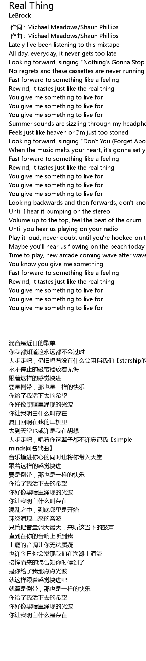 | 歌曲 | Real Thing |