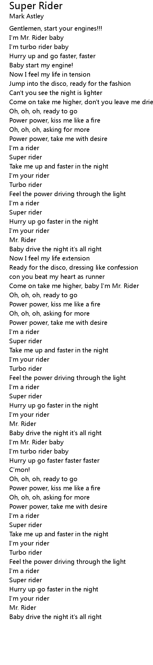 Come on take me higher, baby I'm Mr. Rider |