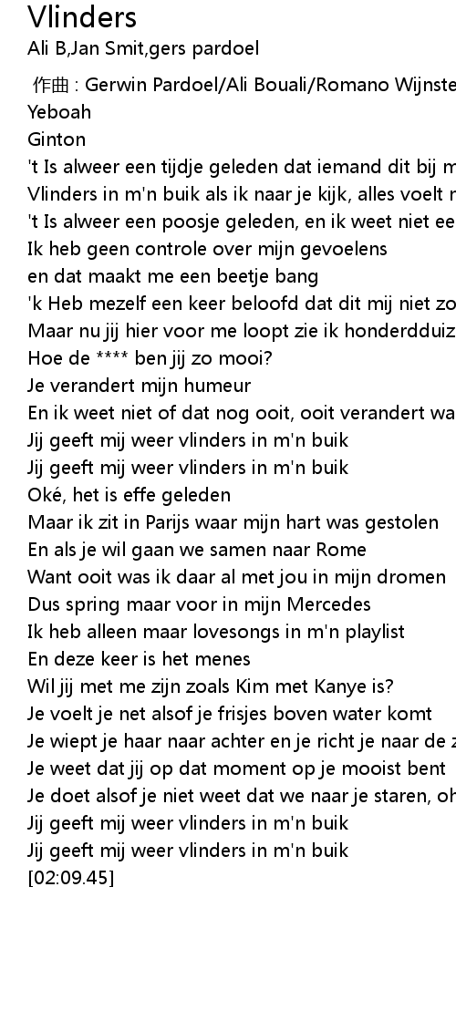 | [01:56.03] | Jij geeft mij weer vlinders in m'n buik |