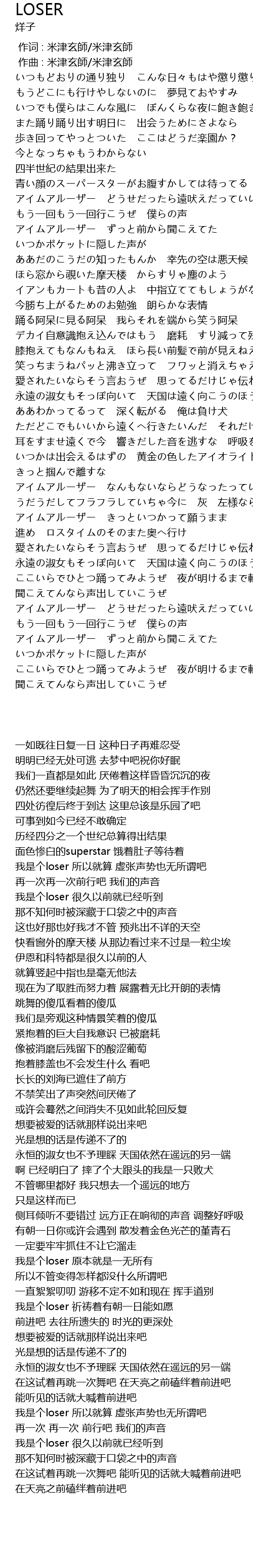 | [02:30.842] | 我是个loser 祈祷着有朝一日能如愿 |
