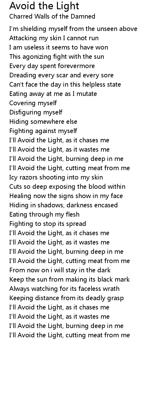 I'll Avoid the Light, burning deep in me |