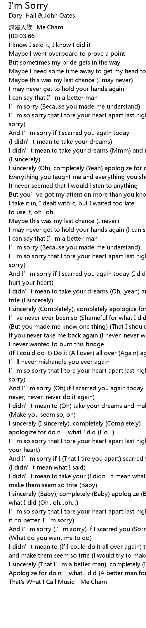 | [04:04.11] | And I' m sorry if I That I tire you apart scarred you again today I didn' t mean what I said |