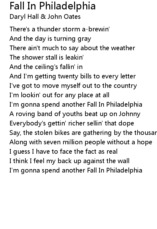 I'm gonna spend another Fall In Philadelphia |