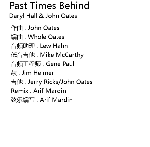 | 歌曲 | Past Times Behind |