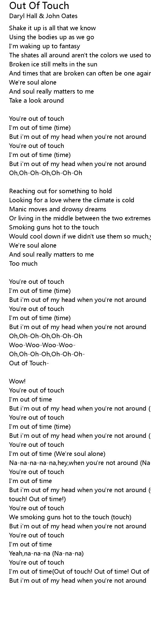 But i'm out of my head when you're not around (Out of touch! Out of time! Out of touch! Out of time!) |