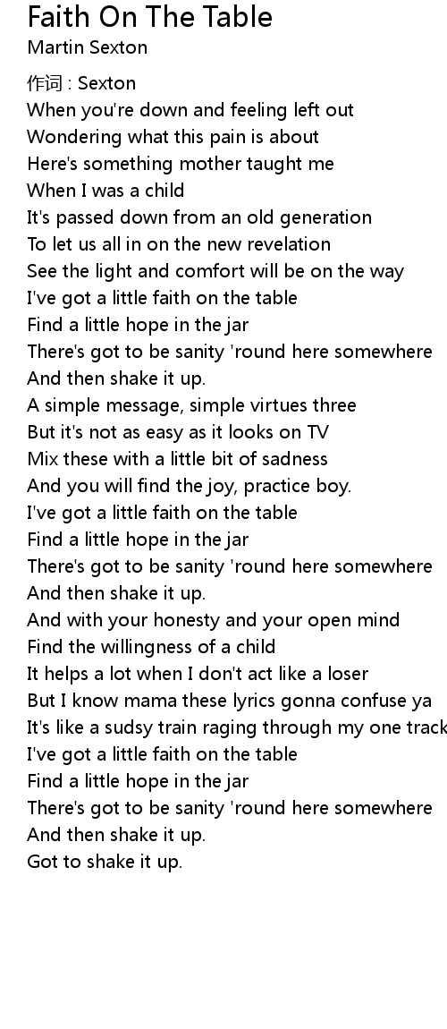 | 歌曲 | Faith On The Table |