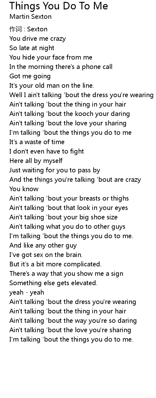 | Well I ain' t talking ' bout the dress you' re wearing | |
