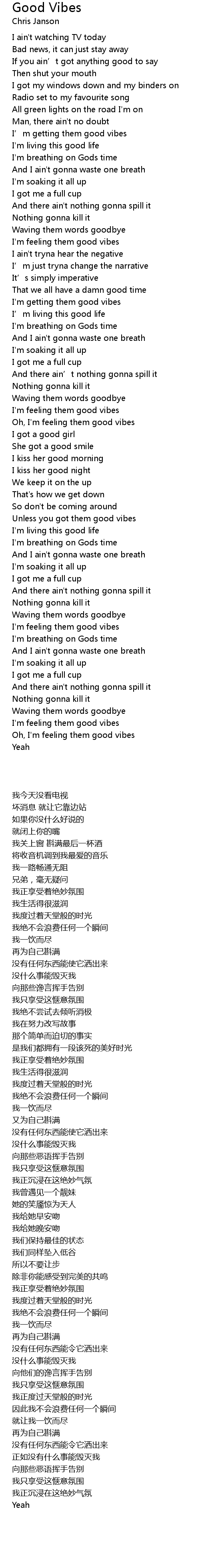 | 歌曲 | Good Vibes |
