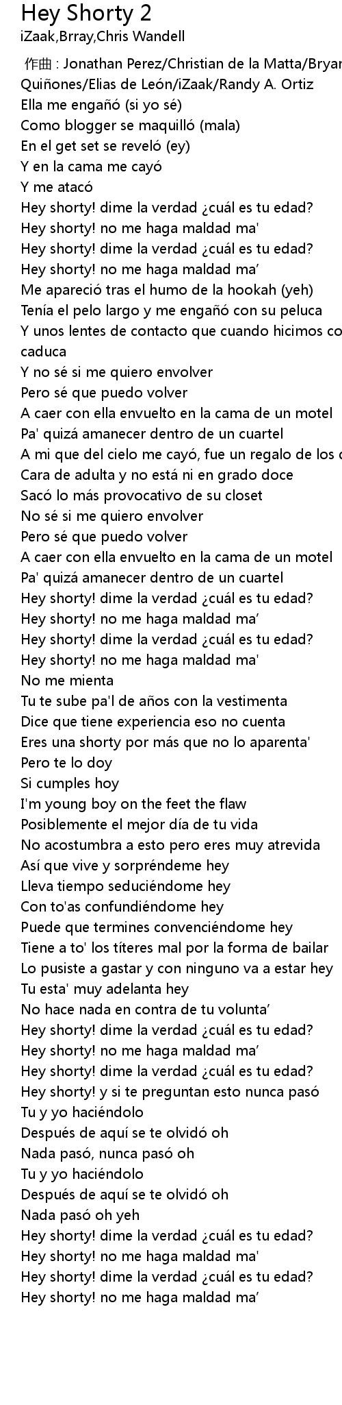 | [00:31.37] | Hey shorty! dime la verdad ¿cuál es tu edad? |