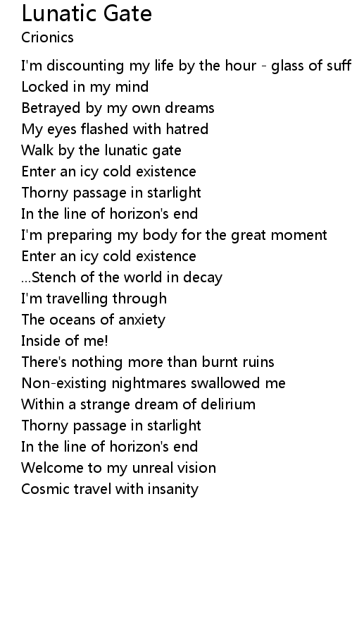 Walk by the lunatic gate |