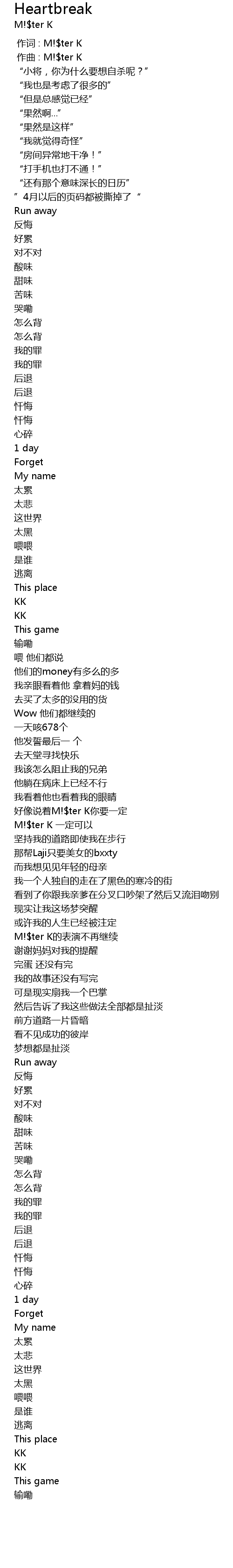 | [00:00.000] | 作词 : M!$ter K |