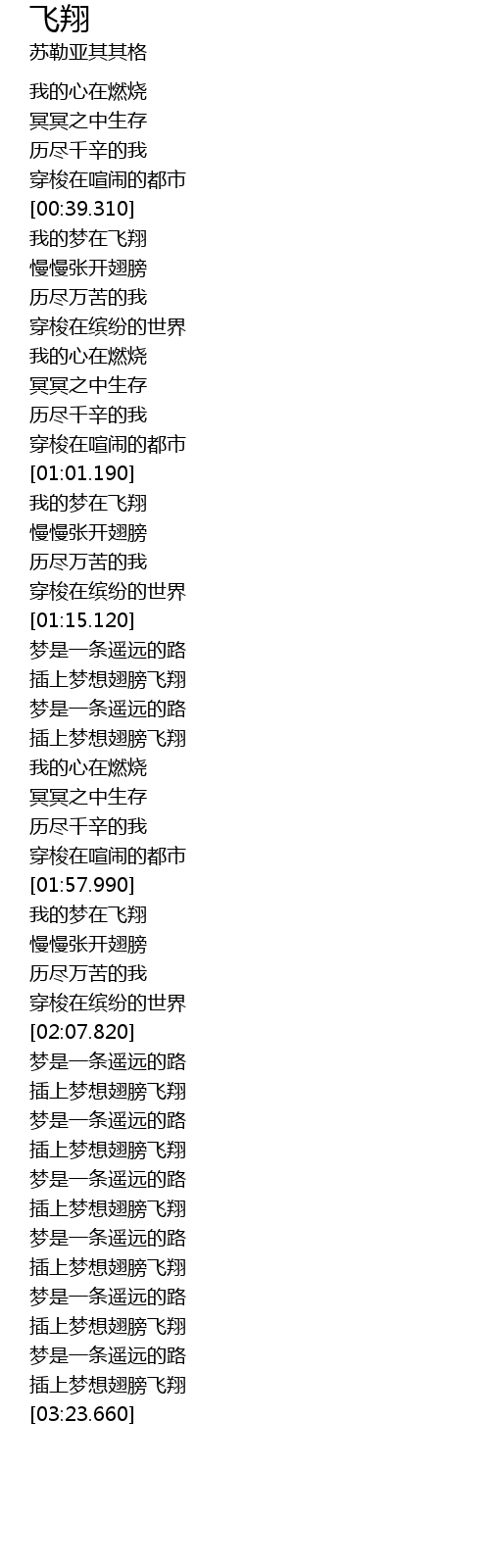 | [02:59.260] | 插上梦想翅膀飞翔 |