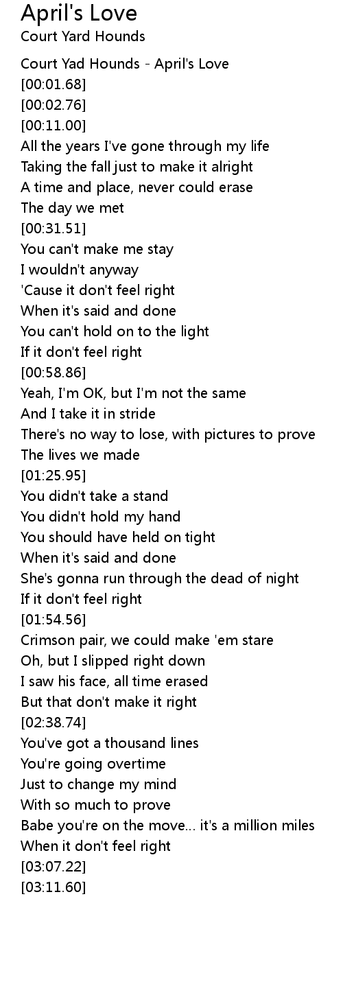 | [00:00.52] | Court Yad Hounds April' s Love |