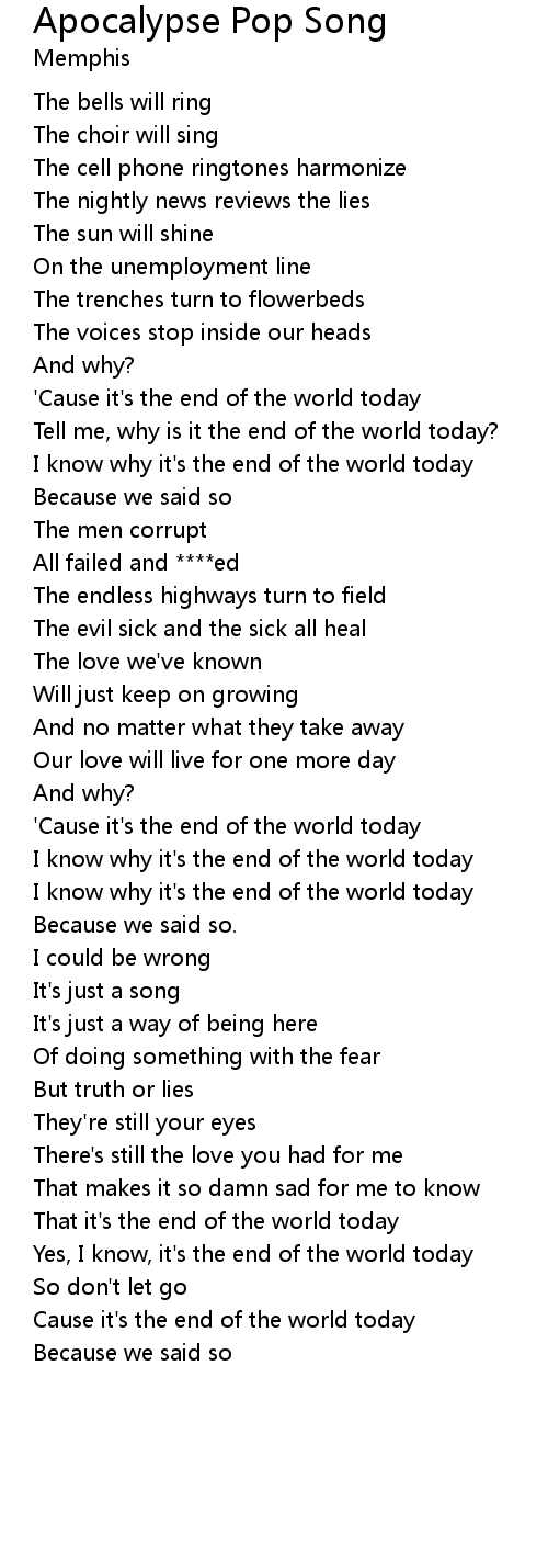 Cause it's the end of the world today |