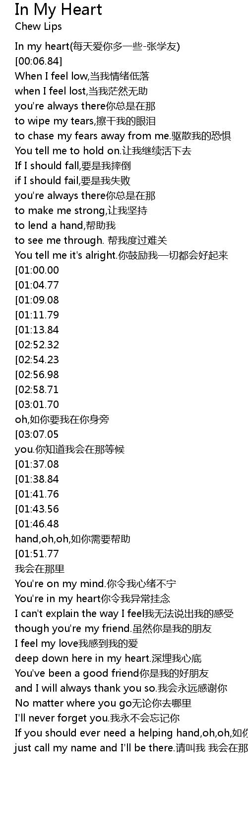 | [00:01.73] | In my heart(每天爱你多一些-张学友) |