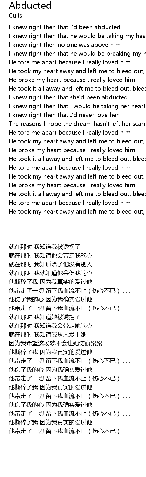 He took my heart away and left me to bleed out, bleed out |
