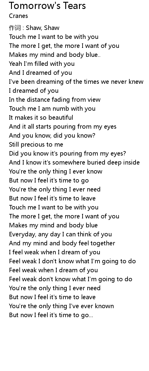| 歌曲 | Tomorrow's Tears |