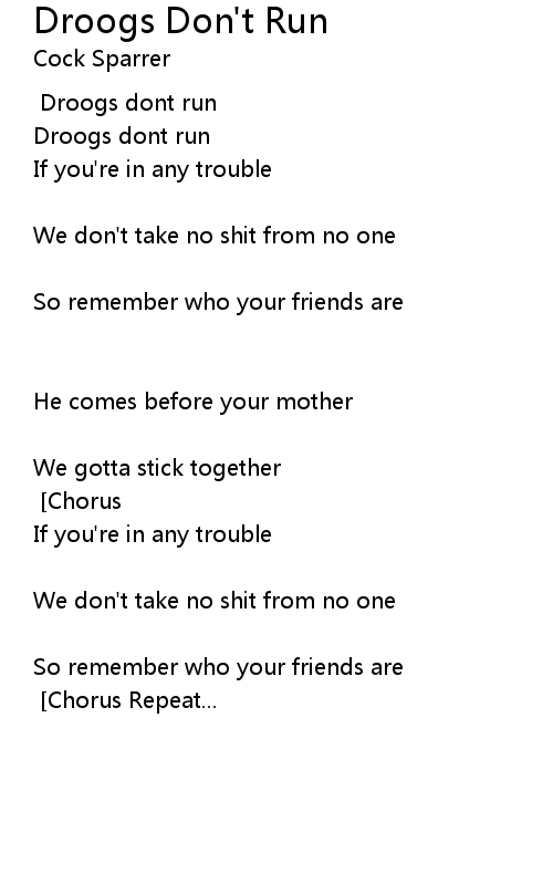 [Chorus] Droogs dont run |